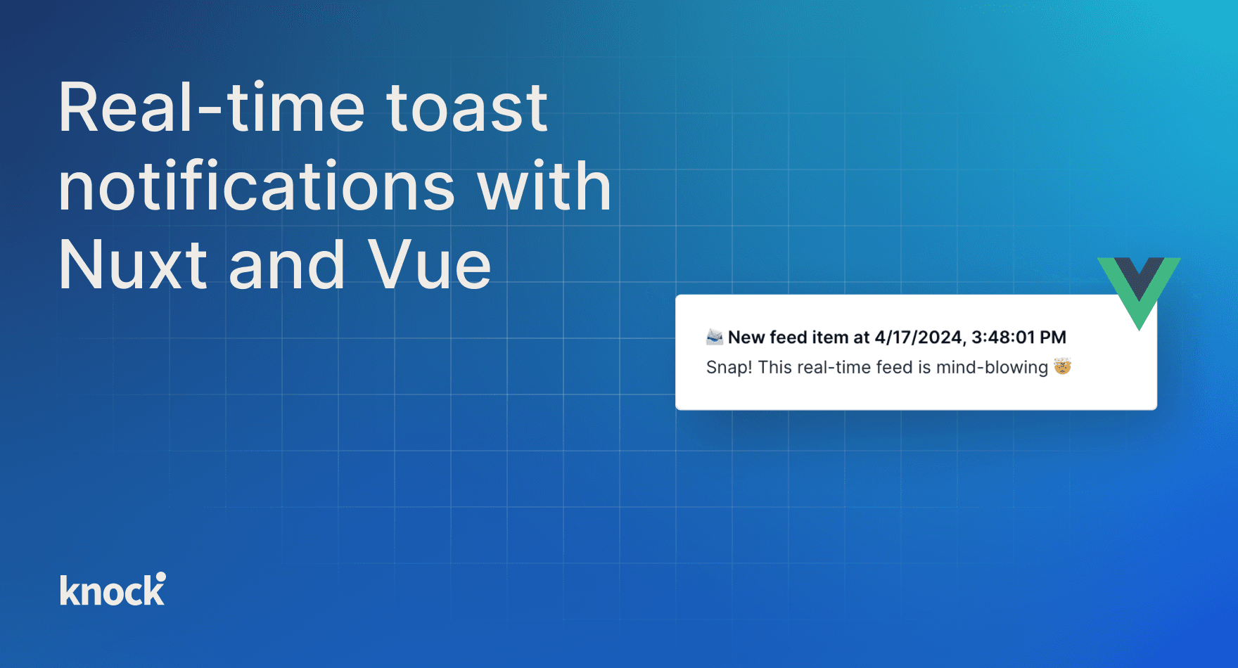 An in-depth guide that covers adding real-time toast notifications using Nuxt, Vue.js, shadcn/vue and Knock's feed API