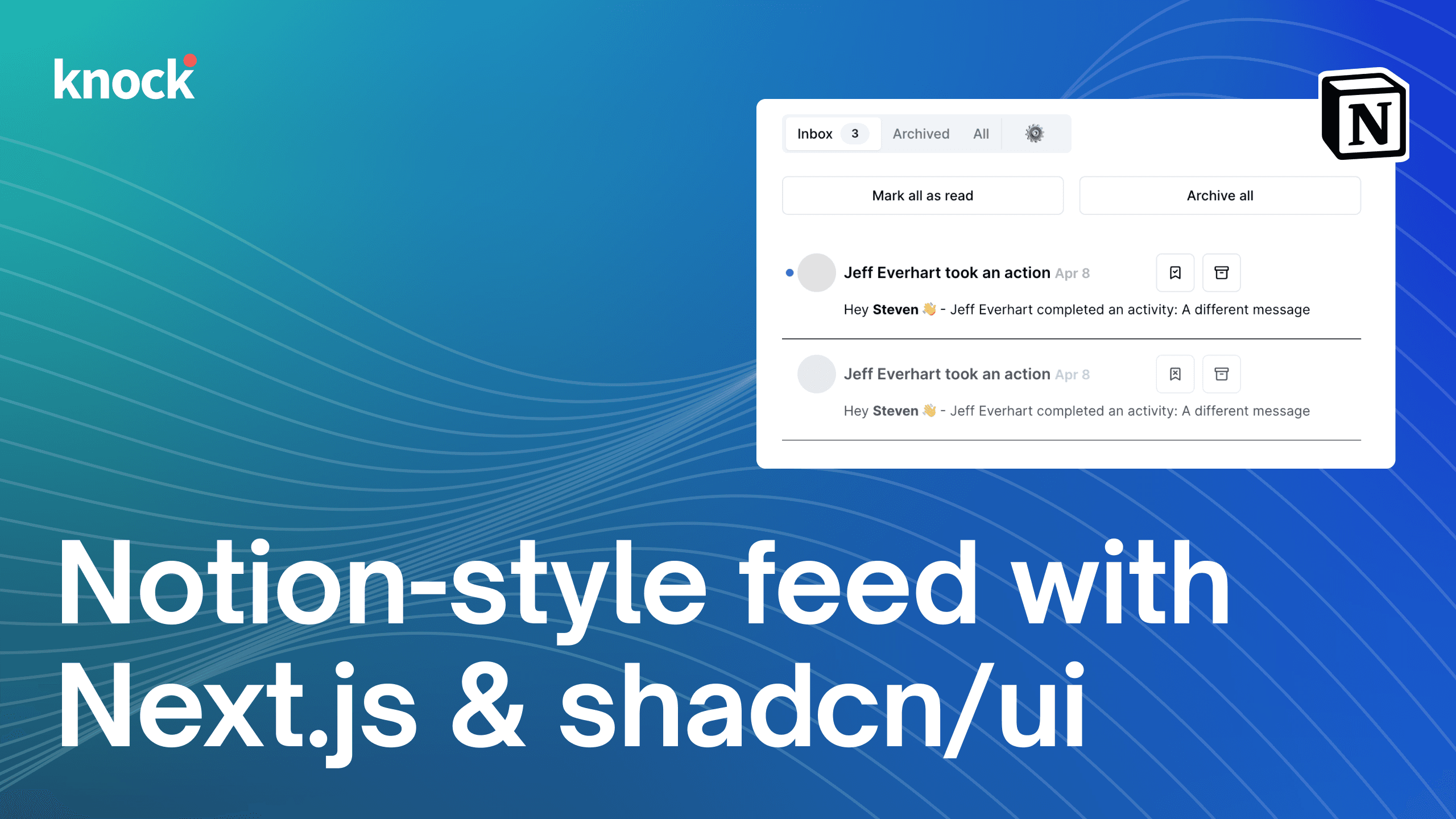 An in-depth guide that covers adding real-time toast notifications using Next.js, shadcn/ui and Knock's feed API