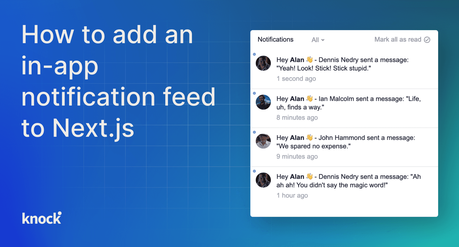 A high level tutorial on how to get started with Knock's drop-in notification feed components and Next.js