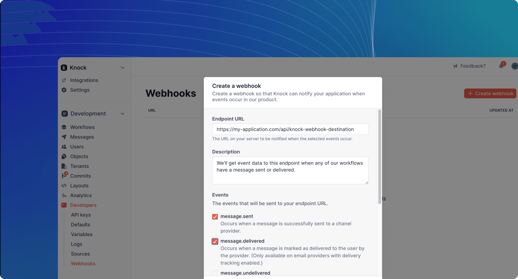 An in-depth guide that covers best practices when building customer-facing webhooks and how to build a webhook dashboard with Next.js and Knock.