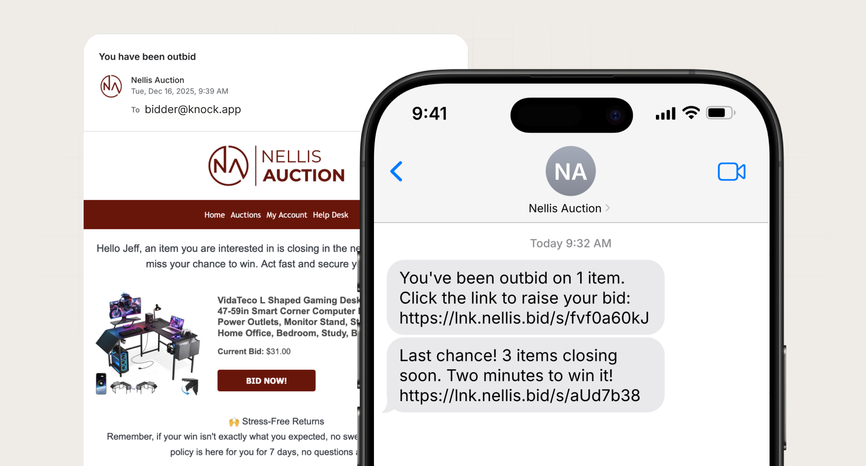 Cross-channel messages that Nellis uses to drive bidder engagement.
