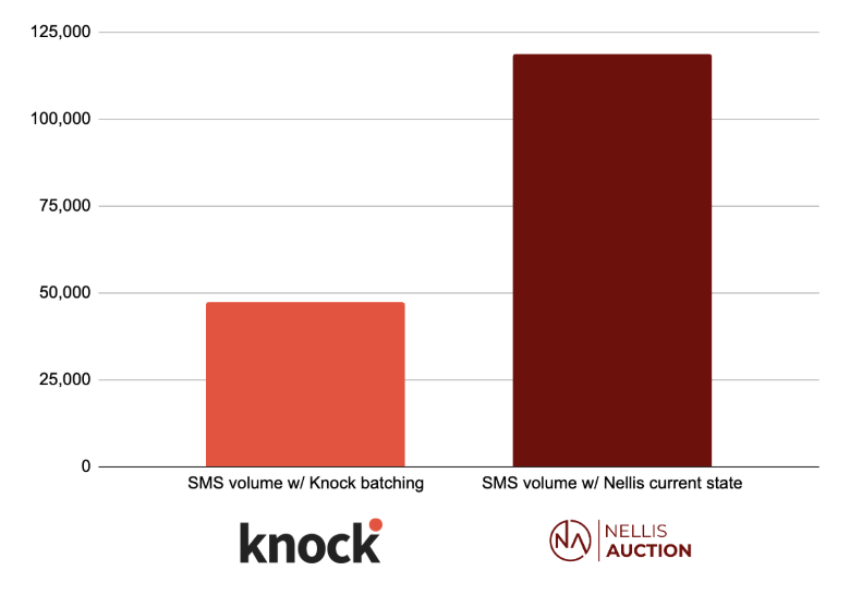 - Up to 60% SMS cost savings. Nellis decided that buying a platform could de-risk their engineering investment and ran a proof-of-value test of Knock that showed smart batching could reduce SMS costs by up to 60%.