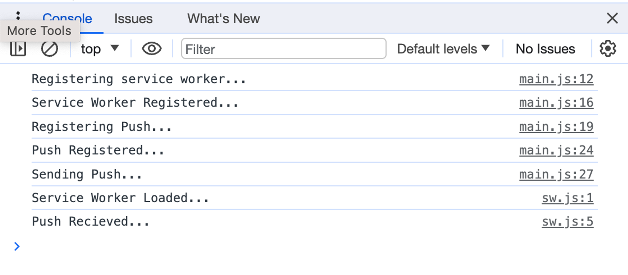 Here’s how all the console messages look in the browser console: