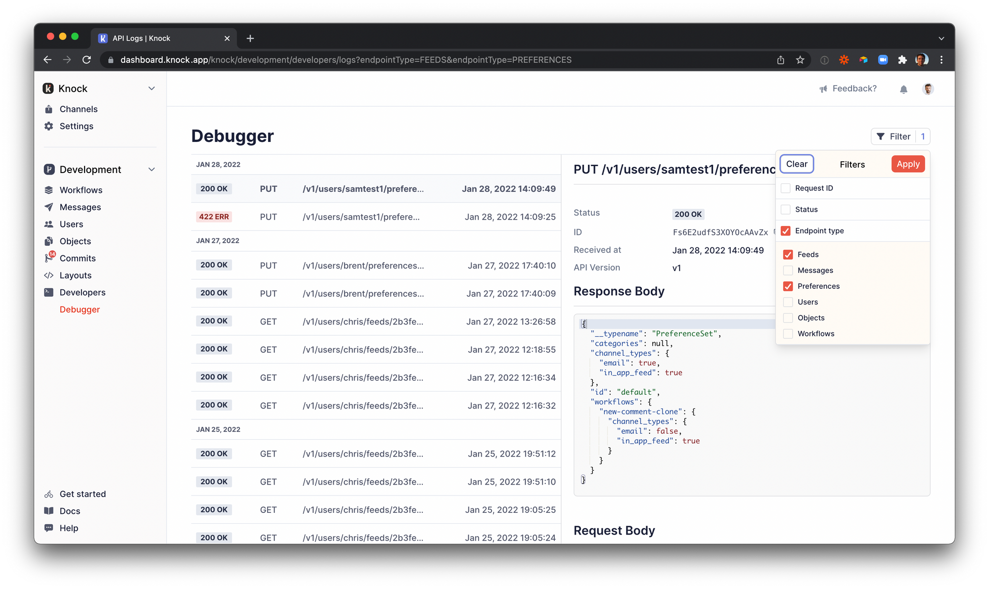 We knew that our customers would need to be able to filter by endpoint in order to find the API logs that are most useful to them. Given the volume of logs and that some features span across multiple different API endpoints, we needed something that met a few important criteria: