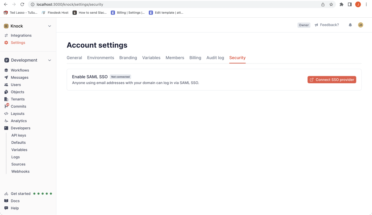 - A great admin-facing setup flow. We loved the self-service admin portal that WorkOS provides and that we could use it to enable our enterprise customers to get their Knock account started with SSO in a few minutes.