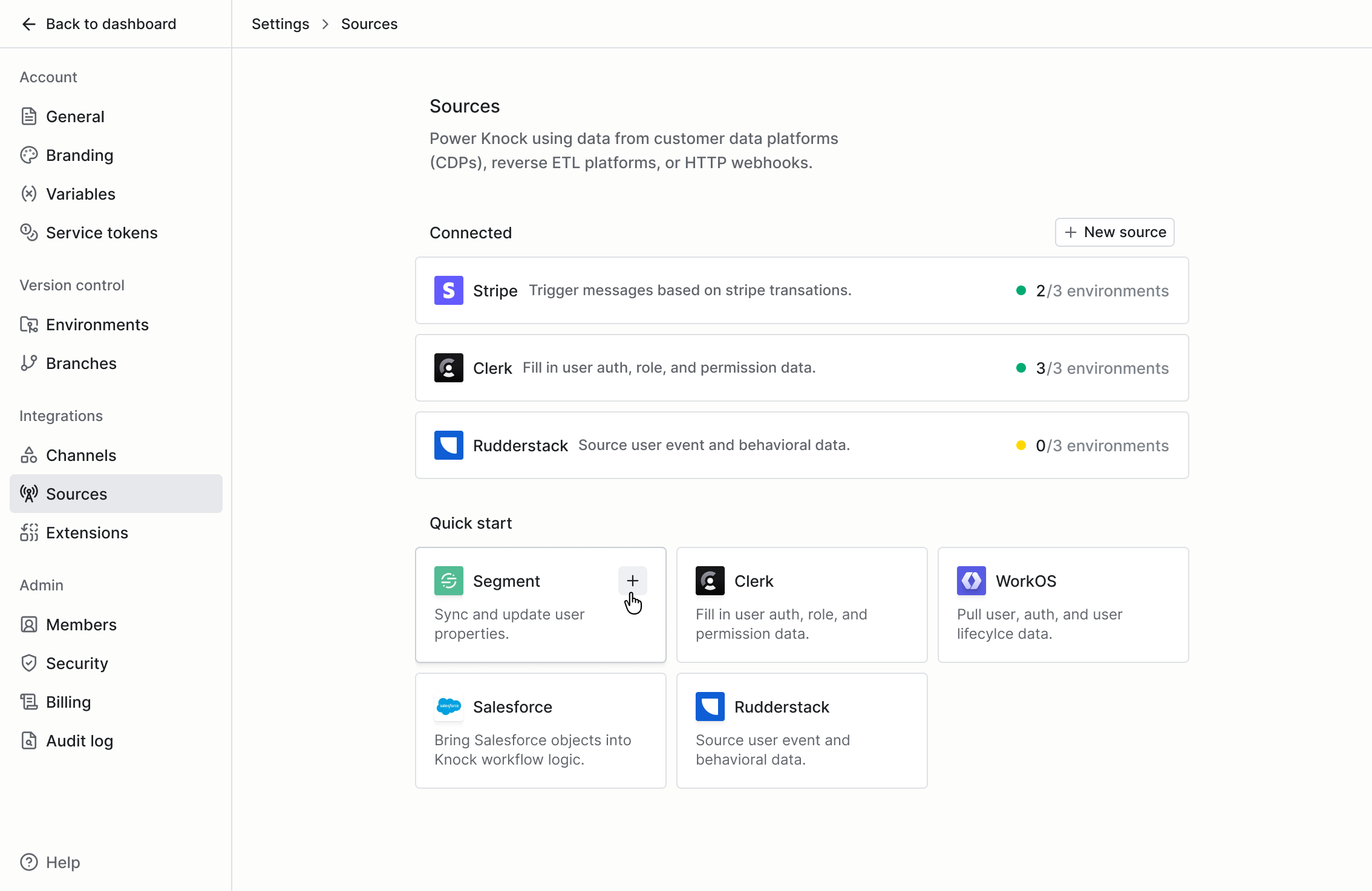 Bring any generic webhook into Knock and map it to any action in our system. Identify users when they’re added to your Supabase DB. Kick off onboarding flows when they authenticate into your product with WorkOS or Clerk. Update their tenant when they convert to a paid customer in Stripe.