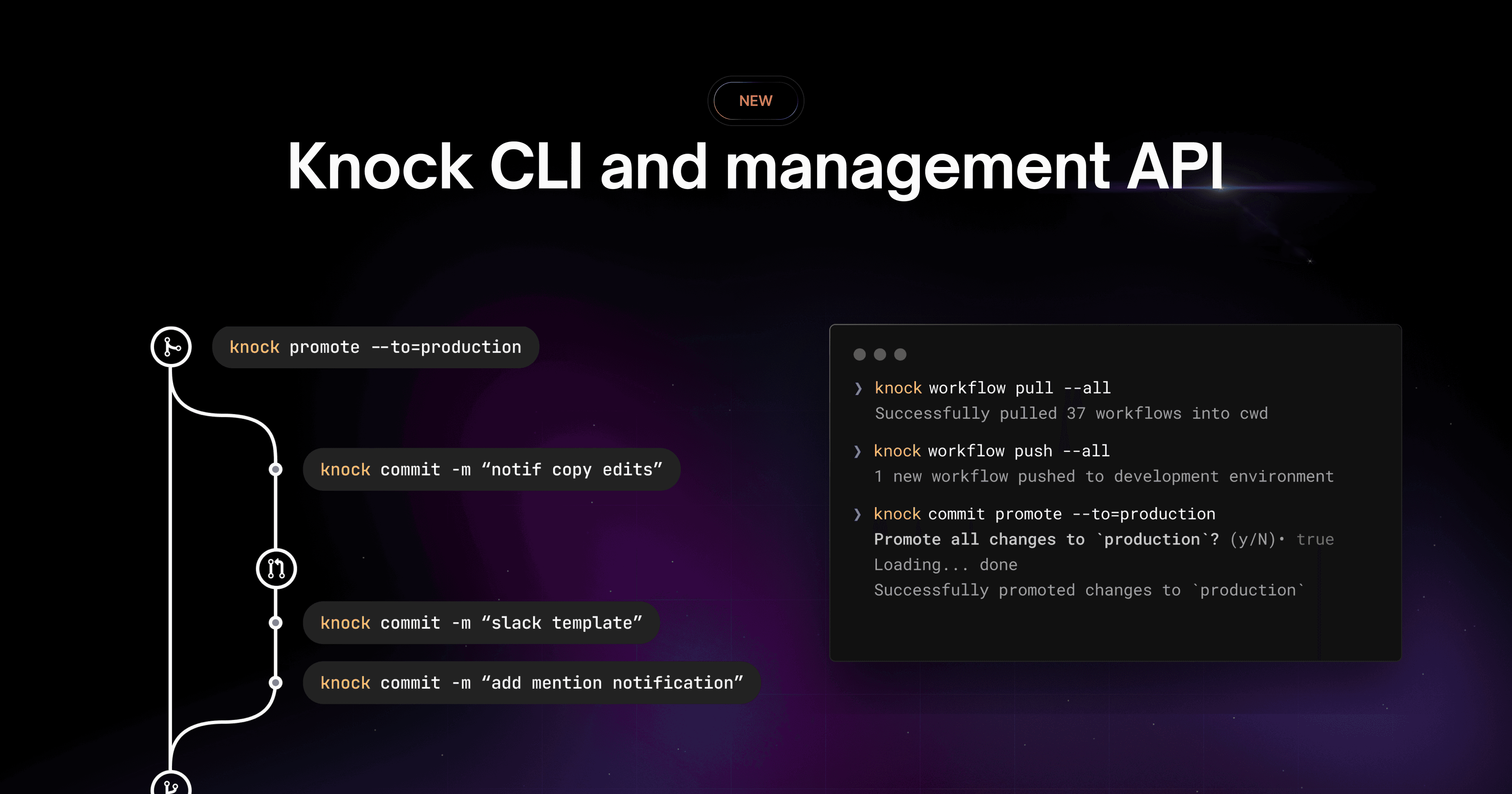 Today we’re thrilled to announce a new way for building, testing, and deploying your Knock notification infrastructure, all in code. Introducing the Knock CLI and management API.