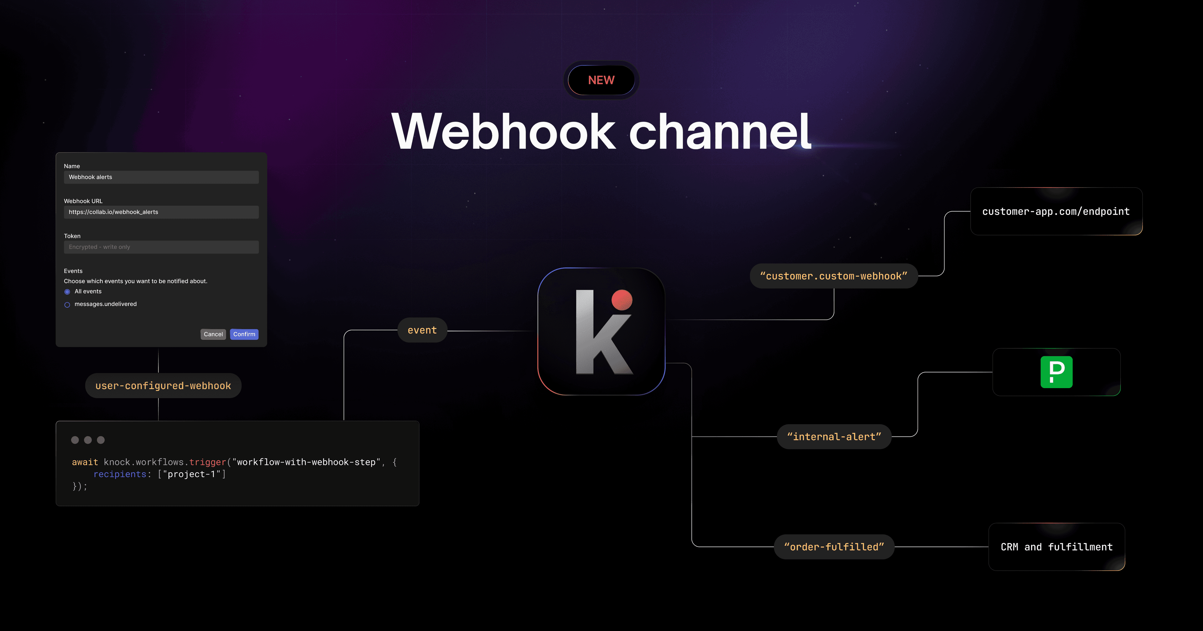 Announcing a new, flexible channel type to use in your notification workflows. Introducing the Knock webhook channel.