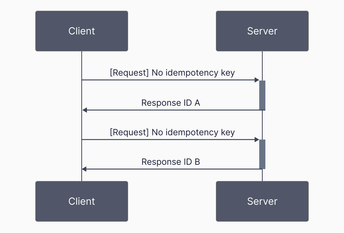 Let's say your application needs to trigger a Knock workflow. You send a request to the Knock API to start a workflow. The request is successful, but the response is somehow lost in transit. Your application doesn't know if the request was successful. If you retry the request, you may end up with two workflows running in parallel. This is a problem.