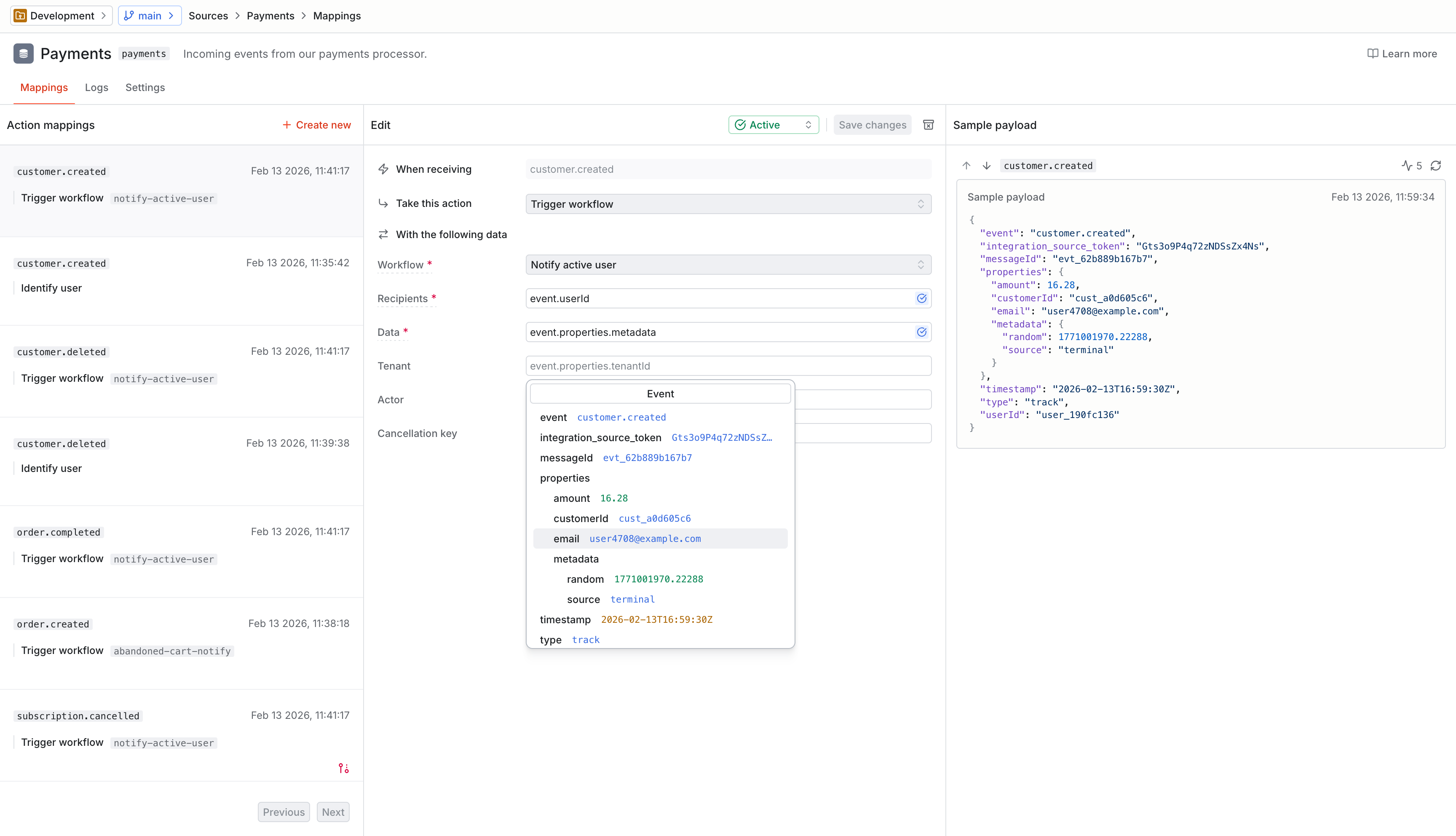 We also upgraded source event trigger steps: view past event shapes, validate mappings inline, and send test events to preview how workflows will run.